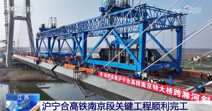 央视网消息:眼下,各地工程在加速推进。在江苏南京,沪宁合高铁迎来南京特大桥跨滁河斜拉桥合龙及转体梁转体等重要工程节点,为全线贯通奠定基础。